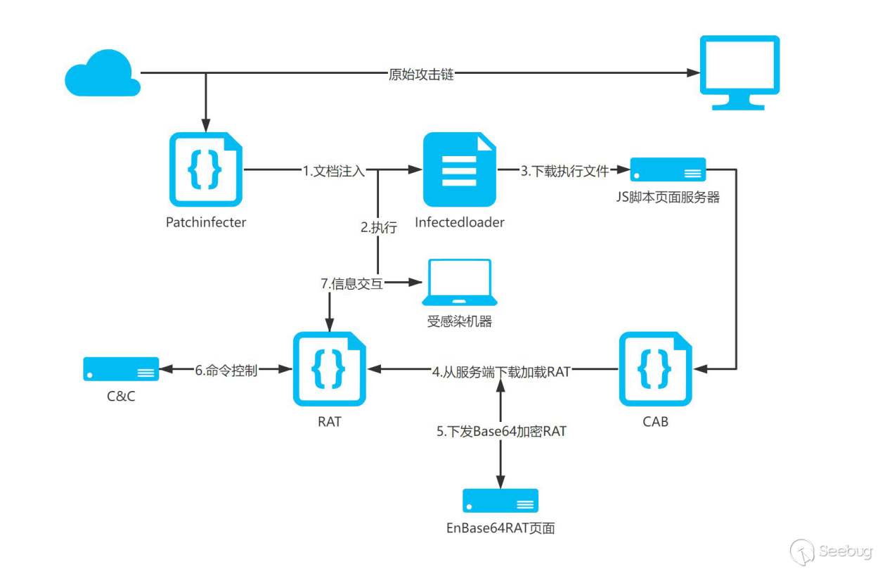 1.Patchinfecter木馬,該木馬遍歷機器上最近打開的文檔,并注入惡意代碼,如果受害者將文檔共享給其他人,那么該受控機器的其他聯系人也會成為新的受控者。跟常見的釣魚文檔不同,此種感染白文件的方式,完全可以造成一個身份受信任的人不通過郵件方式將惡意文件傳給其他人的情況,那么會極大的提高惡意文檔的點開率。根據其特性,知道創宇404實驗室APT高級威脅情報團隊將其命名為Patchinfecter木馬。