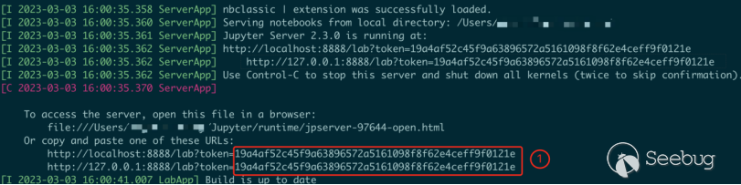 正常啟動JupyterLab的方式,也是輸入一句話命令,默認在本機localhost的8888端口開啟一個Web服務,并且生成一個用戶身份驗證的token值。